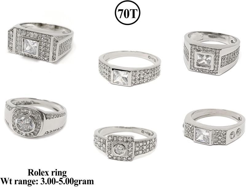 | Design | Square-cut Clear Gemstone,Rectangular Layout With Round-cut Stones,Roman Numeral Engraving Around The Top,Wide Polished Band With Side Stone Rows |